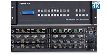 The What: Black Box’s new modular video matrix switchers serve many combinations of legacy AV equipment and new digital systems in a single configurable chassis.