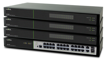 By using Luxul's AMS-2616P (26-port/16 PoE+ ports), AMS-1208P (12 port/8 PoE+ ports), XMS-2624P (26-port/24 PoE+ ports), or stackable AMS-4424P (24-Port PoE+ with two 10 Gigabit uplinks) switches alongside Just Add Power's HD over IP transmitters and receivers, integrators can build an "any size" video matrix that is scalable up to a maximum of 4,000 inputs x 65,000 outputs. All four Luxul switches are Layer 3-capable, enabling endpoint control of RS-232 or CEC devices and supporting console API features of Just Add Power's HD over IP products, including video wall management, custom error screen messaging, Image Push, and Image Pull.