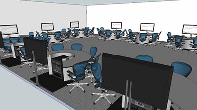 What about the technology? This is where it can get real expensive…really quickly. Our studies have shown that a projection system is not always the best solution for this type of room. Projecting images for six to eight tables of students plus a main room display can be very costly. We feel that the displayed image should be a flat panel display no larger than 50 inches and no smaller than 40 inches. The display should be mounted at the end of the table but down low so students can see it but also view the instructor when they are in the front. The room display should still be a projected image, but it can be smaller and off the “center line” of the room, because the same information for critical viewing would be at the student tables. We still keep the primary image up in the front to support the 20% lecture component. To make sure that everybody is seeing the same thing, the resolution of the projected image should match that of the displays at the student tables.