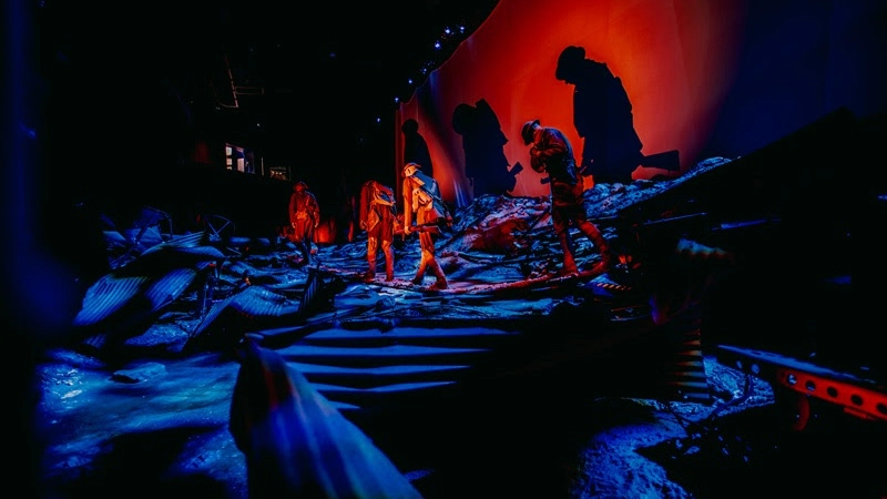 Beyond Encounters, PIXERA underpins content playback and synchronization throughout the Museum and Memorial. In the Kemper Horizons Theater, projection and a dramatic diorama convey the brutal conditions of trench warfare, while the Battlescapes experience surrounds visitors with multiple edge-blended projections to place them in a “crater” amid a chaotic artillery bombardment. Four PIXERA two servers and one PIXERA Control Core are used for these non-Encounters experiences.