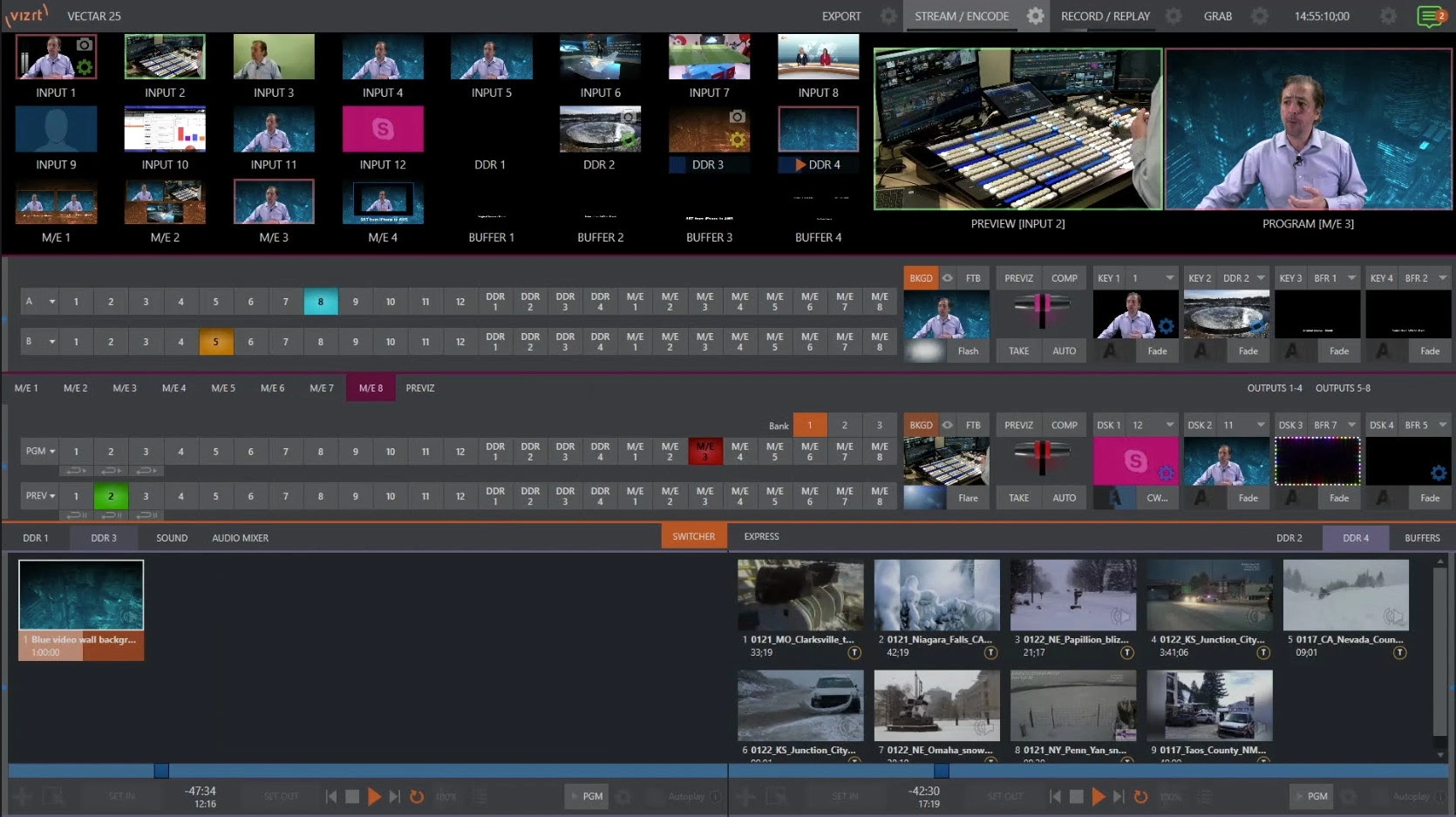 The What Else: Part of the Vizrt Live Production Solution, Viz Vectar Plus extends functionality beyond normal video input sources, with direct support for videoconferencing call applications, web browsers and multiple streaming protocols. Its resolution, frame rate and aspect ratio independence provide support for multiple outputs to accommodate programming for various device types.