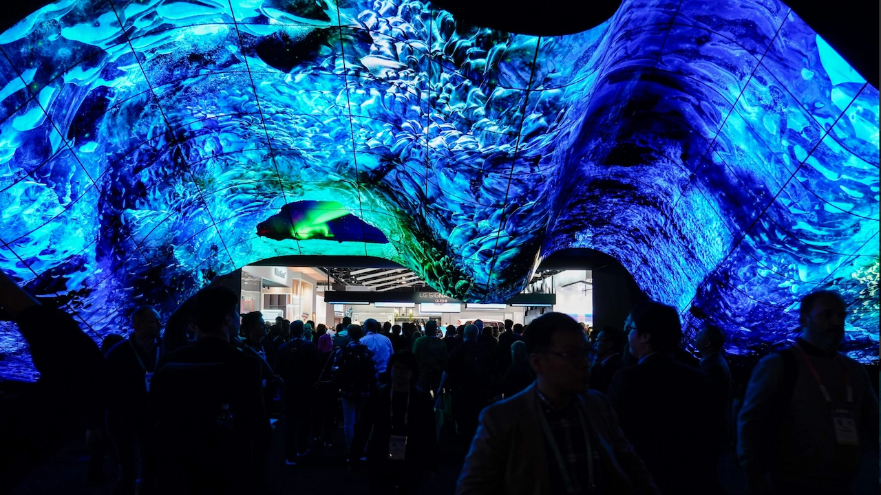 The colossal and captivating LG OLED Wave is made up of 200 55-inch LG OLED digital signage screens (128 convex and concave and 72 flat). Measuring 20 feet high and 82 feet wide, the exhibit immersed CES attendees in the glory of the natural world, from the raw power of the oceans to the birth of the Aurora Borealis in the northern sky.