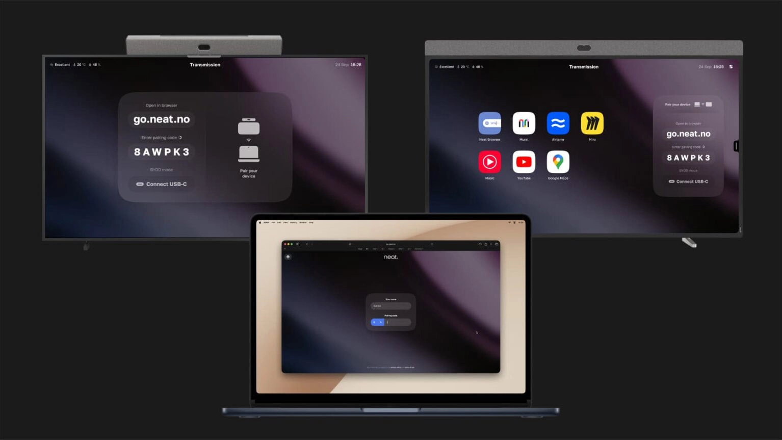 Neat Open unites three powerful layers to make spaces more functional and intelligent. Using a laptop with a USB-C cable users can instantly tap into Neat’s premium microphones, cameras and speakers. Users can also pair their browser with room controls and AI-powered notes, providing an easy way to adjust settings, manage the call, and capture key takeaways directly from their laptop.