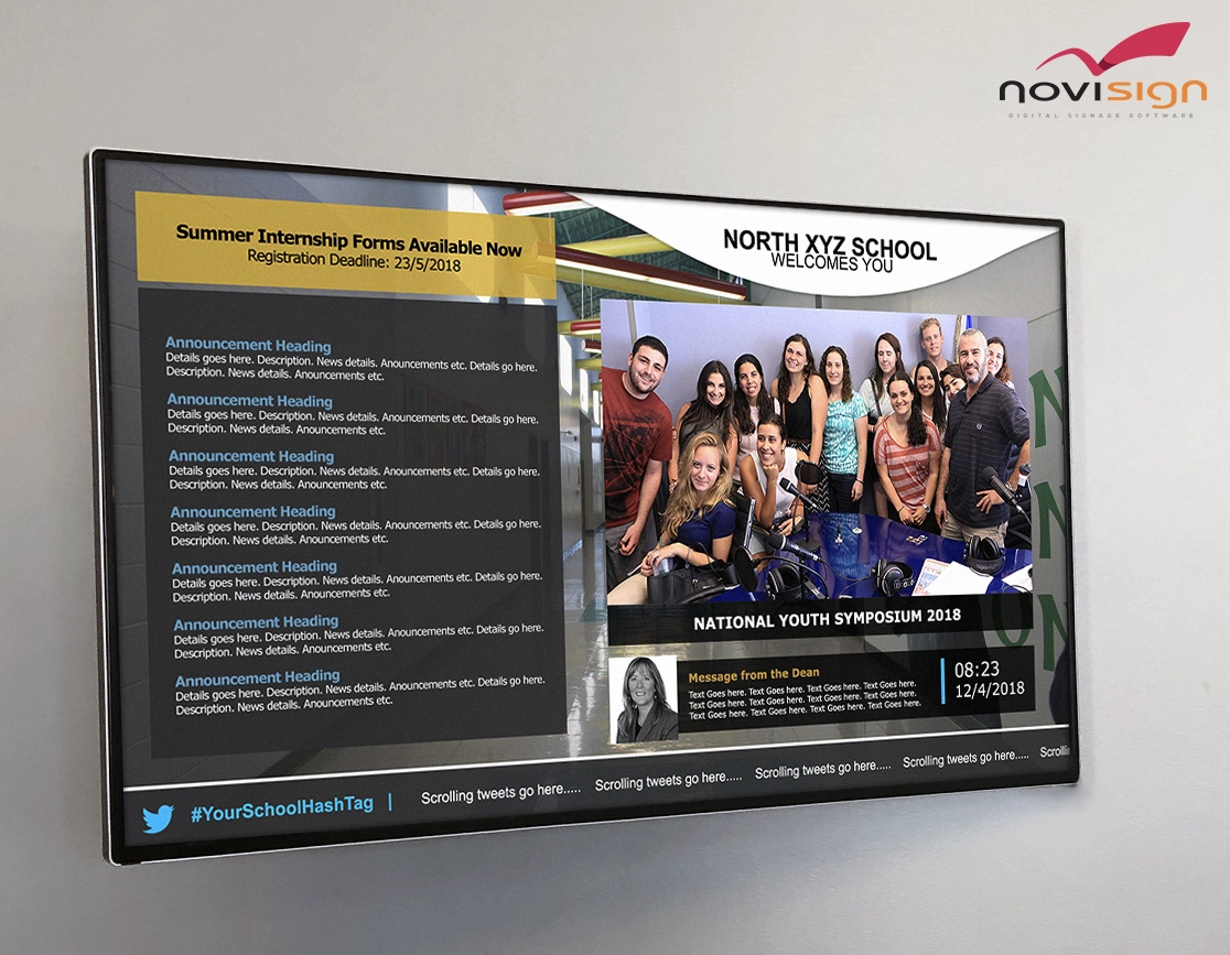 "NoviSign is exactly what we needed in our high school to display the news, videos, weather updates, slides, and other information that we needed to put out to students," testified Adrian Ramos, a teacher at EL Teacher at Eisenhower High School. "NoviSign's product is awesome and very easy-to-use. I had a few questions when setting up some of my templates and was able to get assistance immediately. I had NoviSign up and running within 15 minutes."