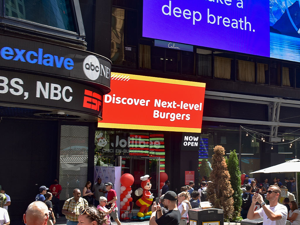 Jollibee opens Times Square location with LED storefront digital marquee from SNA Displays.